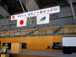 2026.1 津市二十歳のつどい 公開済み: 2026年2月19日更新: 2026年2月19日作成者: president実績紹介カテゴリ: セレモニー 津市二十歳のつどいの会場設営を行わせていただきました。 新成人の皆様、おめでとうございます! 場所は「日硝ハイウェイアリーナ」にて 先ずは、養生シート敷きから・・・ 次いで、ステージを設営 イスをひたすら並べ・・・ 完成! 関連記事 23 2023.11 国道306号 鈴鹿亀山道路 中心杭打ち式 鈴鹿サーキットホスピタリティラウンジにて、国道306号 鈴鹿亀山道路中心杭打ち式の会場設営をさせていただきました。 『中心杭打ち式』とは…道路計画の事業予定や周辺の測量・地質調査を本格的に行う事業着手前の節目に行われる儀 […] 公開済み: 2024年4月23日更新: 2024年4月23日作成者: 本社スタッフ実績紹介カテゴリ: セレモニー 2022.10 津市戦没者戦災犠牲者追悼式会場設営 津リージョンプラザ お城ホールで執り行われました津市戦没者戦災犠牲者追悼式の会場設営を行わせていただきました。 同日、弊社伊勢営業所でも、伊勢市戦争犠牲者追悼式の設営を行わせていただきました。 公開済み: 2022年11月8日更新: 2023年12月1日作成者: webmng実績紹介カテゴリ: セレモニー 30 2024.4 安全祈願祭 安全祈願祭の会場設営を行わせていただきました。 時々、作業現場中の不慮の事故に合われた方のニュースを耳にすると、胸が痛くなりますね。 どうか無事に作業が終えられますように(拝) 公開済み: 2024年5月30日更新: 2024年8月1日作成者: 本社スタッフ実績紹介カテゴリ: セレモニー